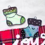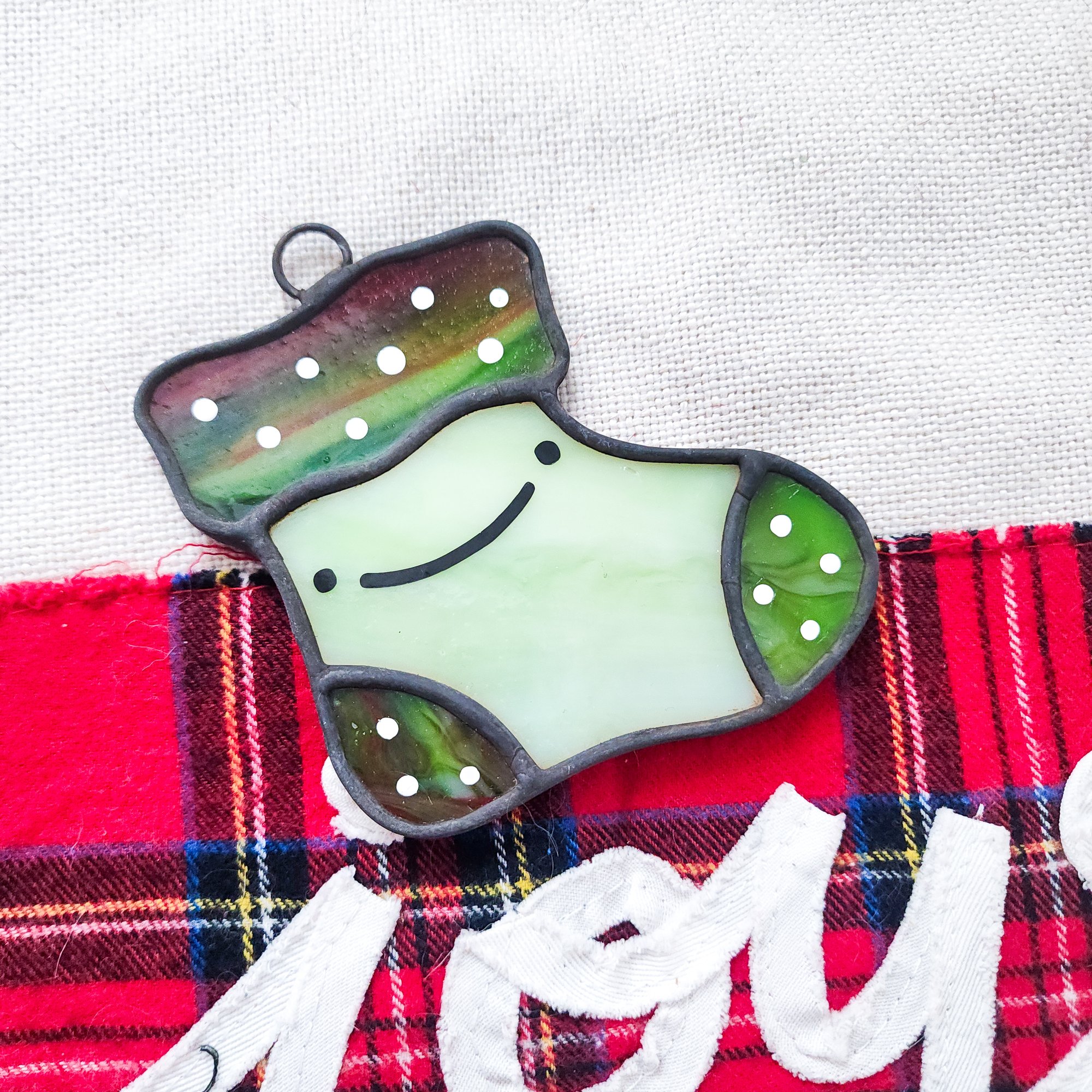 Suncatcher is roughly 4" in length. Handmade out of high quality glass and metal with a string for hanging. (I highly advise against hanging your piece using suction cups, even for small pieces!)